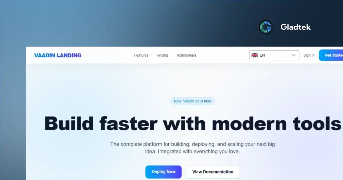 If you already read the GladTek article on mastering Vaadin 25 with Tailwind CSS, this repository is the upgrade of the original use case with only a hero section, navigation and static footer.